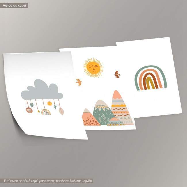 Playful cloud, Μountains, Rainbow, Poster, Boho style