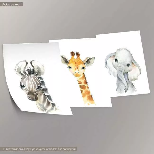 Little Africa, Zebra, giraffe, elefant poster, 3 panels