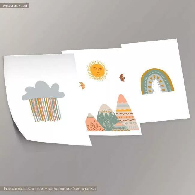 Rainy cloud, Mountains, Rainbow, Poster, Boho style
