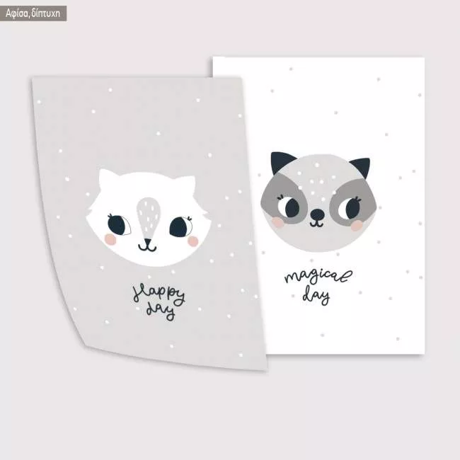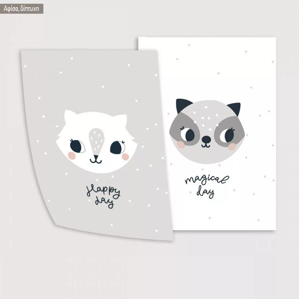 Kids canvas print Newborn Fox and Raccoon, diptych