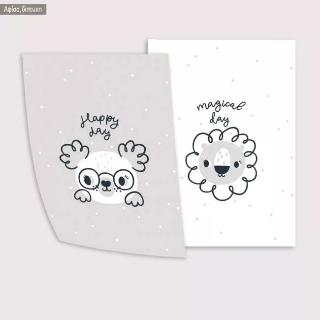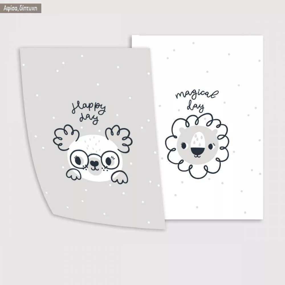 Kids canvas print Newborn Koala and Lion, diptych