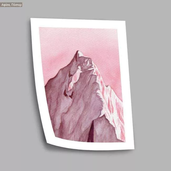 Mountain in pink watercolor, poster