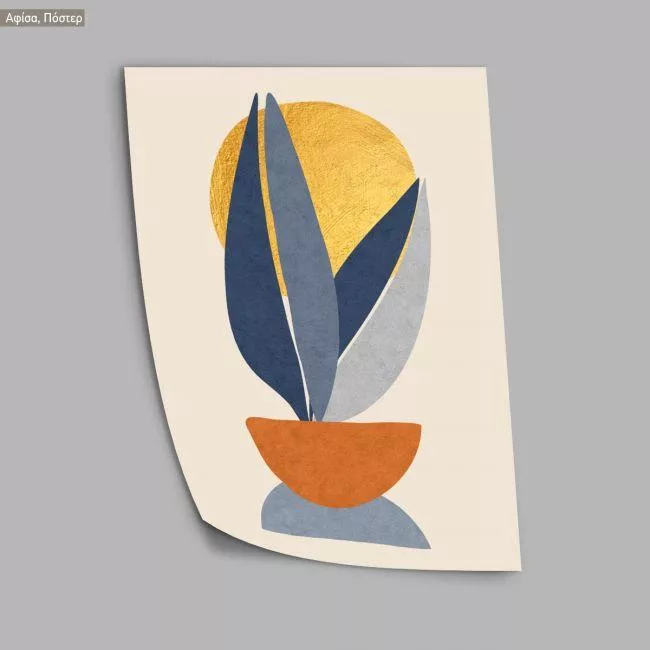 Gold sun, blue leaves, poster