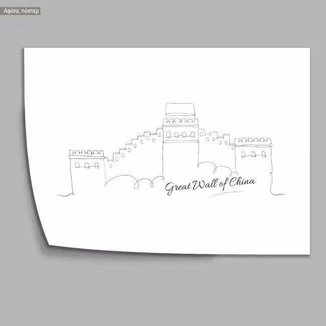 Cityscape line art The Great Wall of China, poster