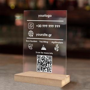Sign plexiglass, rate us at google, customized background,