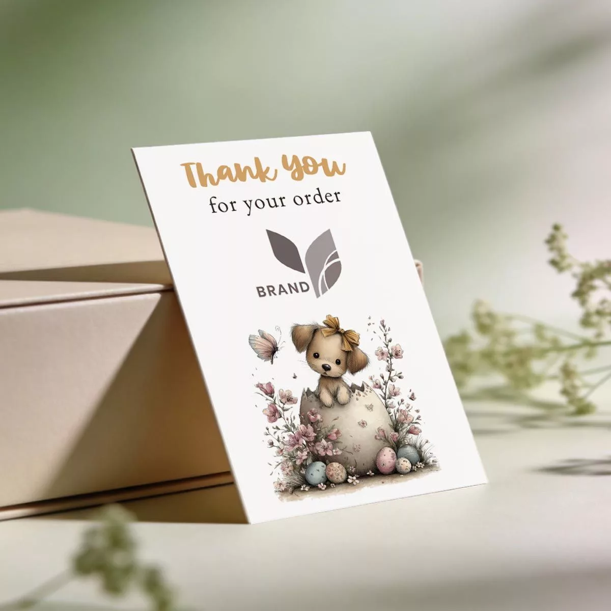 Personalized Easter Puppy Egg tags with logo & QR. Elevate your brand’s unboxing experience instantly.