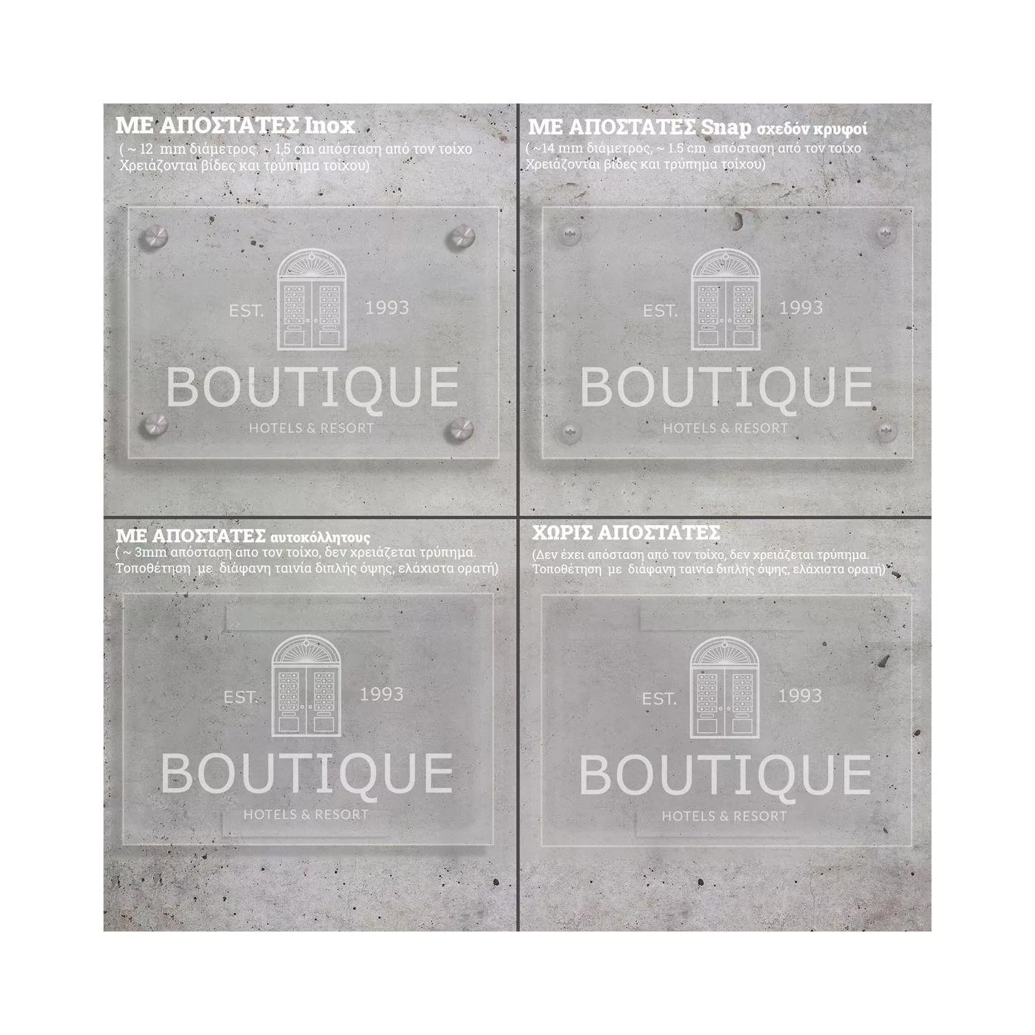 • Αποστάτες Inox, εξέχουν ~ 20-30 mm, τοποθέτηση με βίδες *
