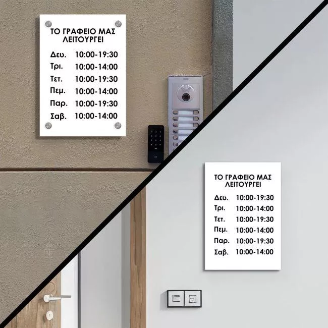 Plexiglass acrylic sign, working hours portrait