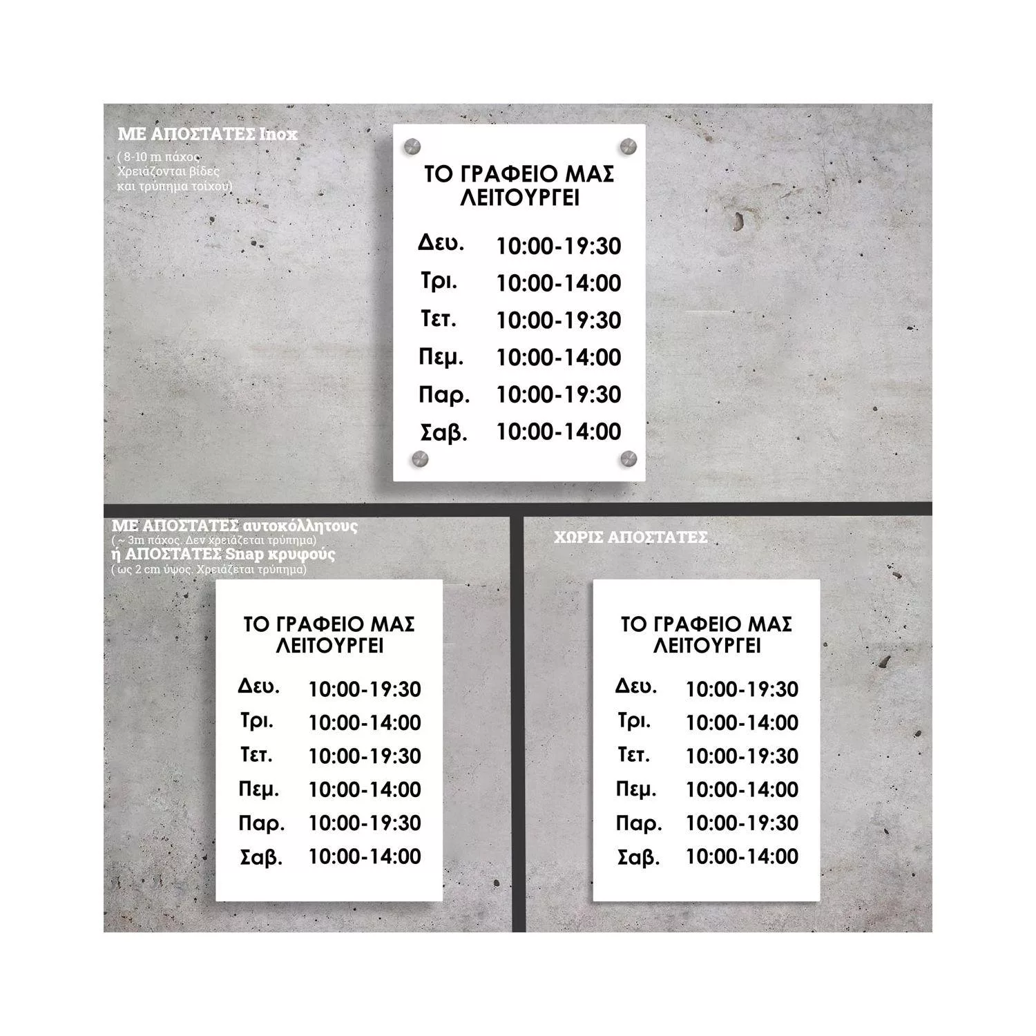 • Αποστάτες "αόρατοι" Snap, εξέχουν 10 -20 mm, τοποθέτηση με βίδες