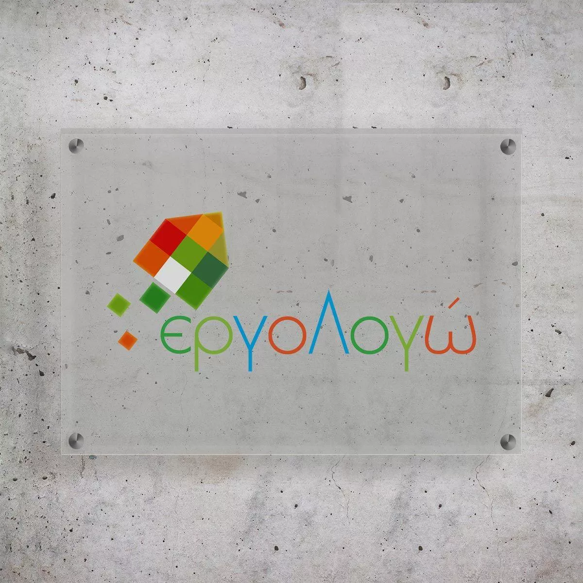 Frosted plexiglass sign, printed logo