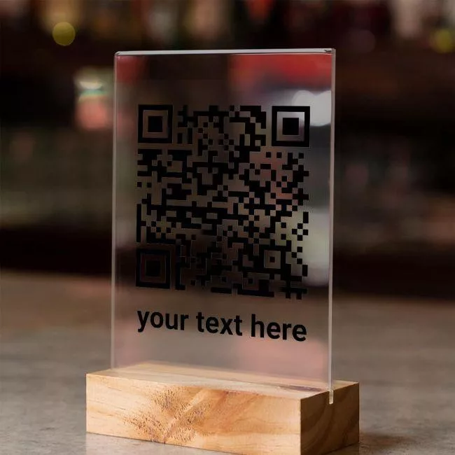 QR Sign, plexiglass transparent, black code