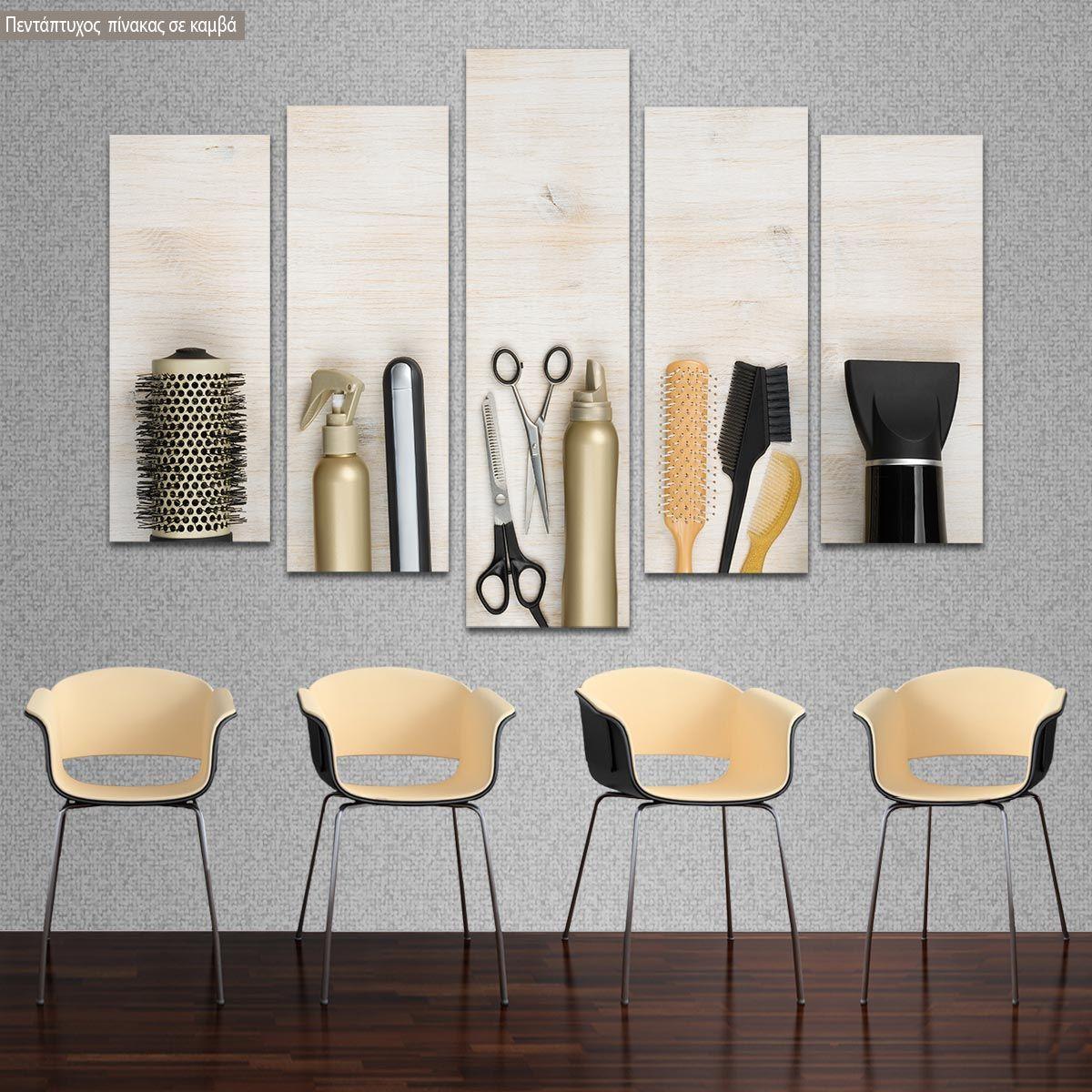 Canvas print Hairdressing tools five panels