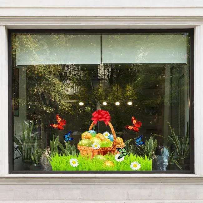 Easter Window Decal Basket on Grass Meadow for Retail Store Display