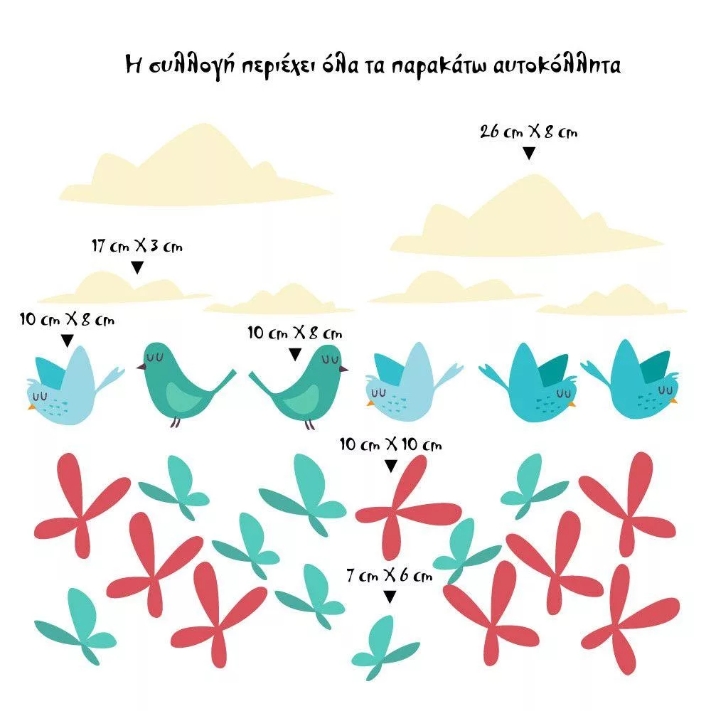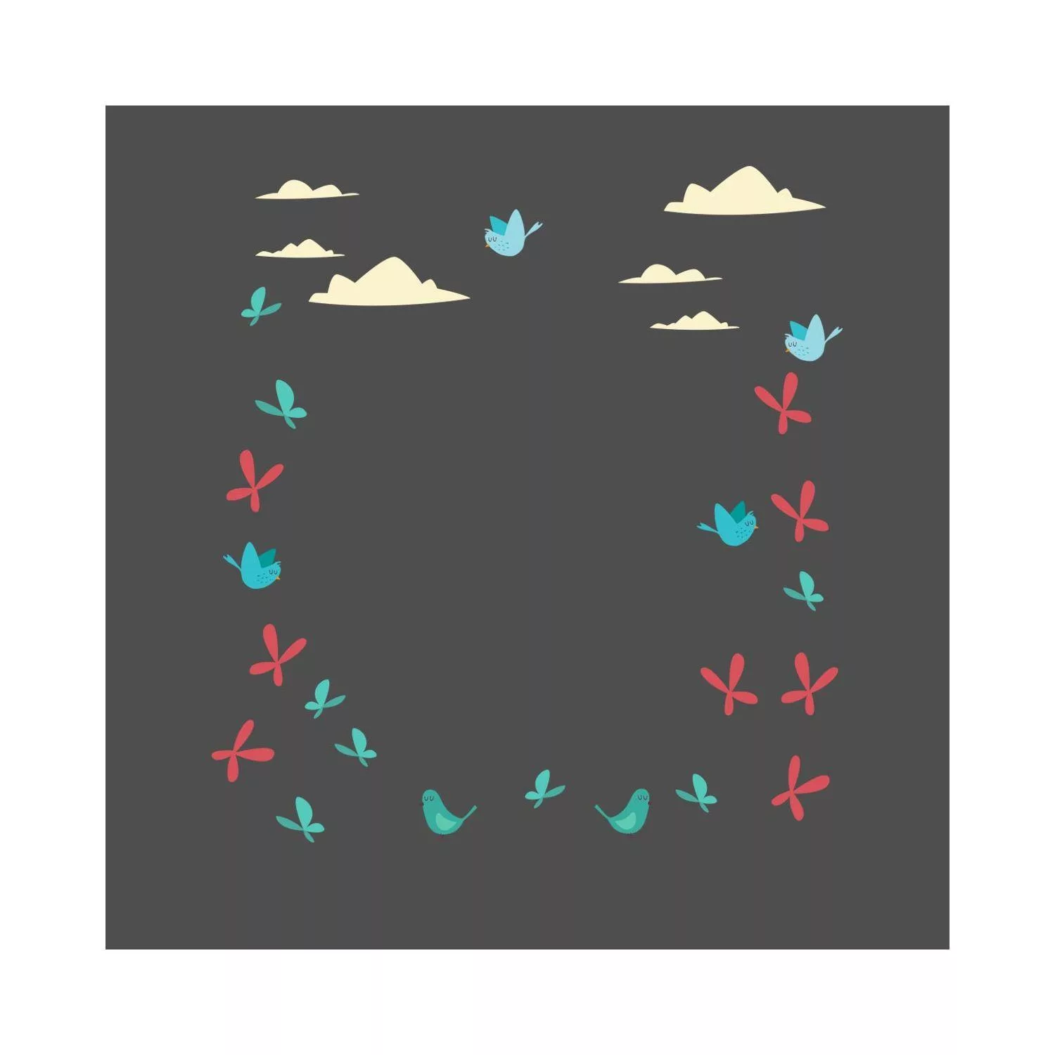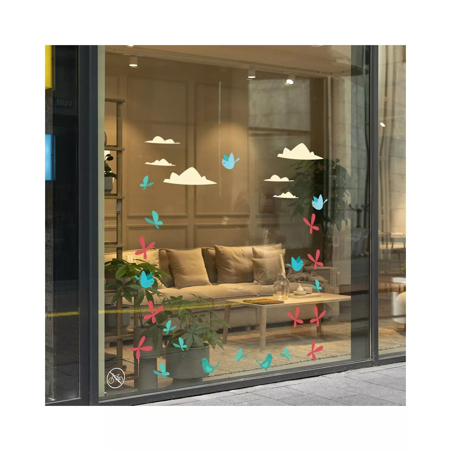 Easter shop window stickers, Spring time birds clouds and butterflies