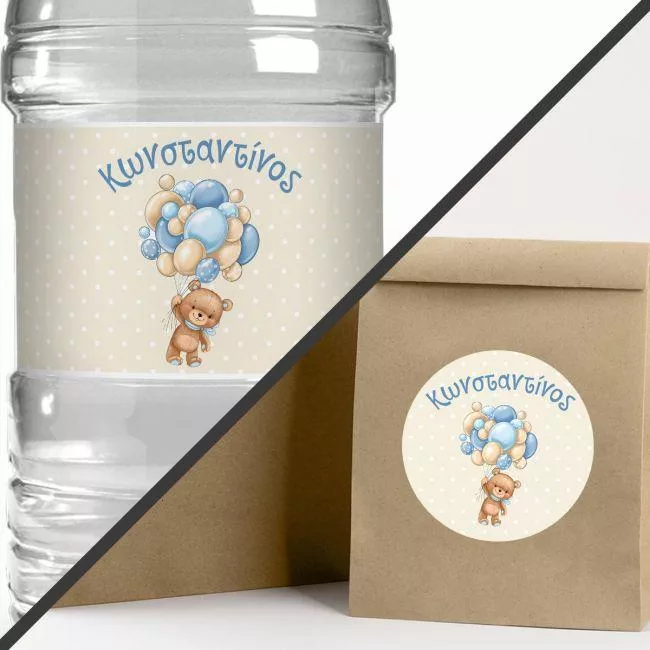 Sticker label Flying balloons bear