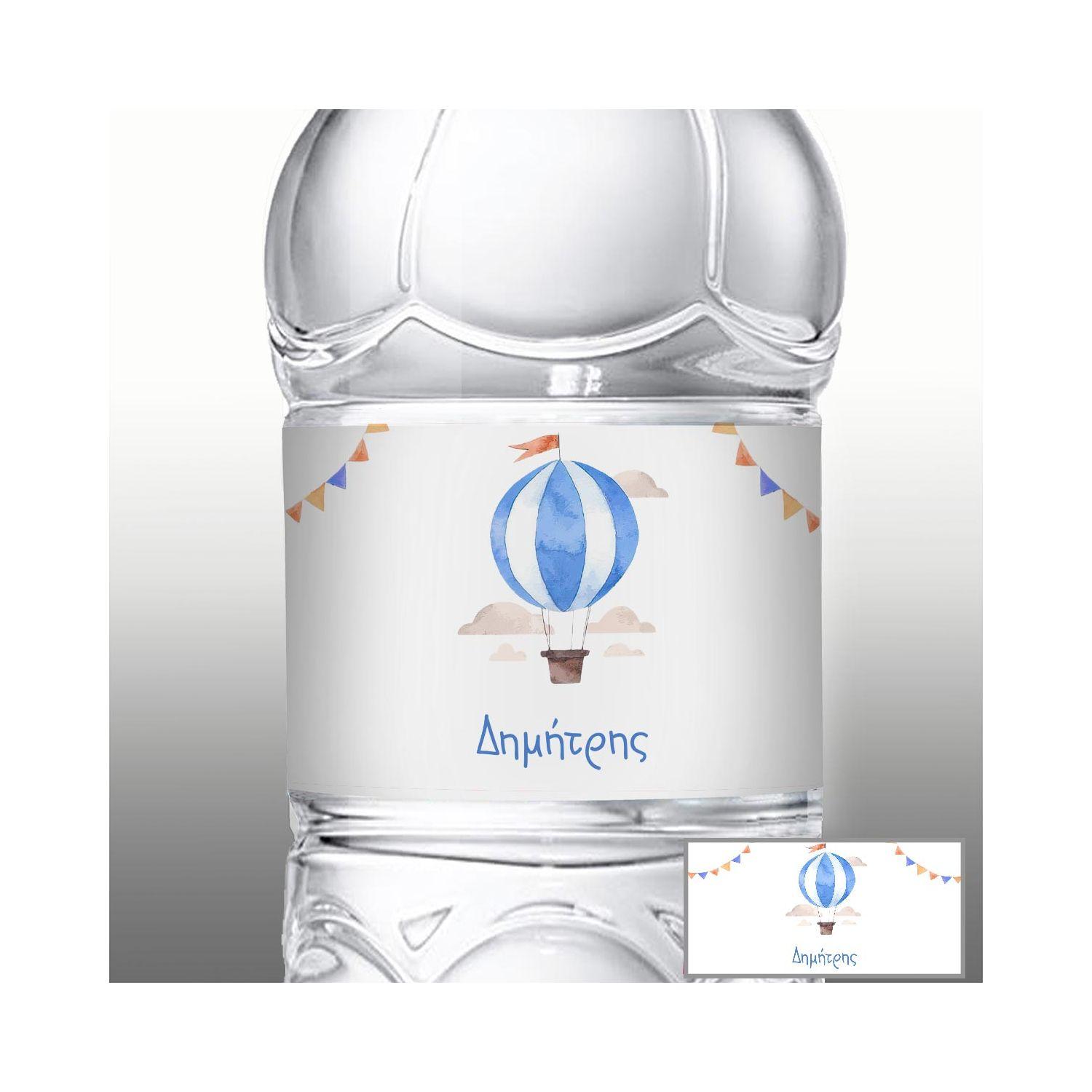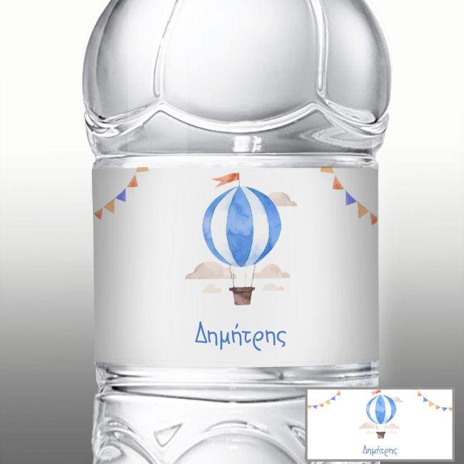Sticker label Hot air balloon blue watercolor