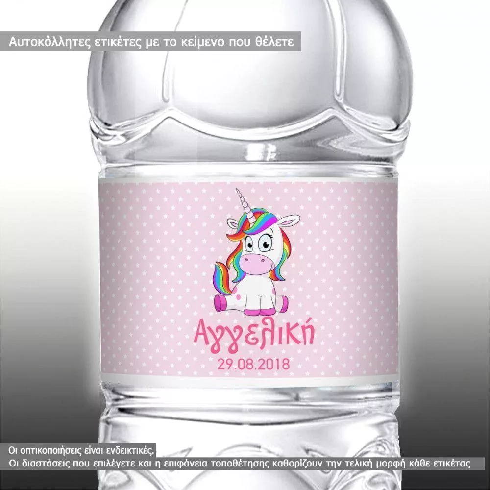 Sticker label Cute unicorn, with name and date