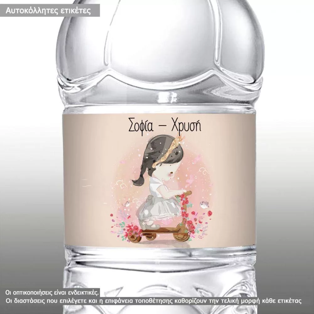 Sticker label Little girl on trike watercolor