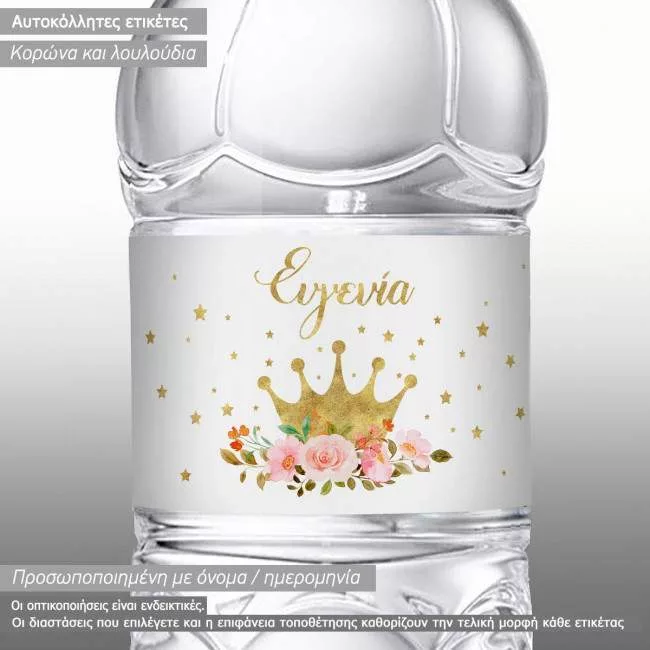 Sticker label Golden crown and roses