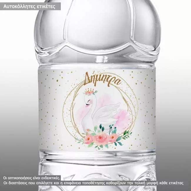 Sticker label Swan flowers golden details