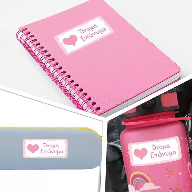 School Stickers labels Pink Heart