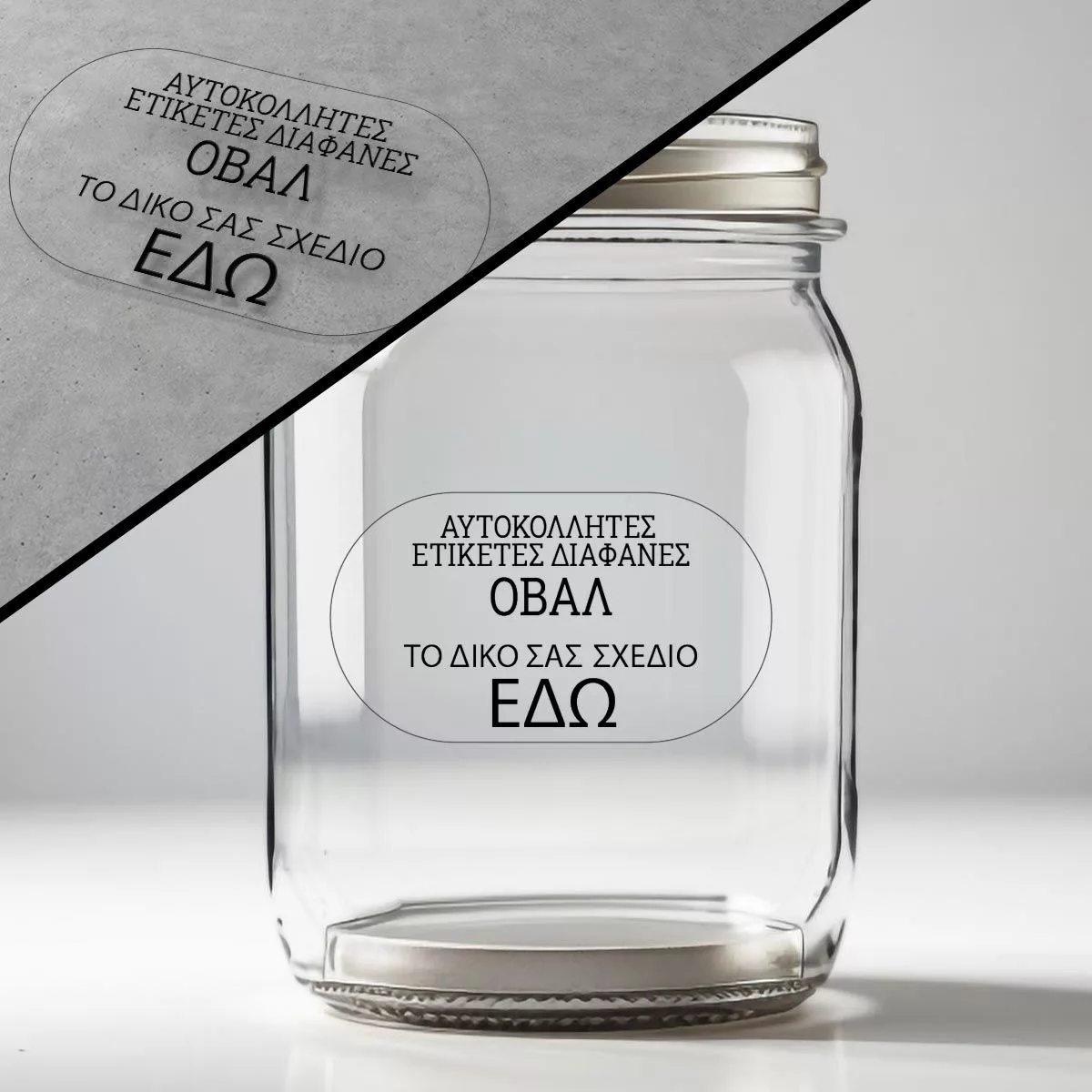 Create your own transparent oval labels with your chosen name and design for a sophisticated look.