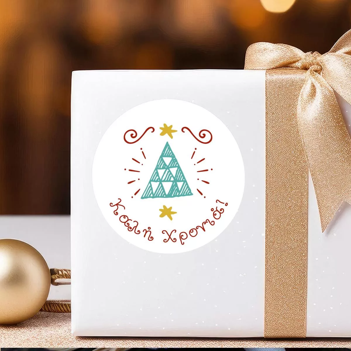 Christmas sticker label, Hand drawn christmas tree