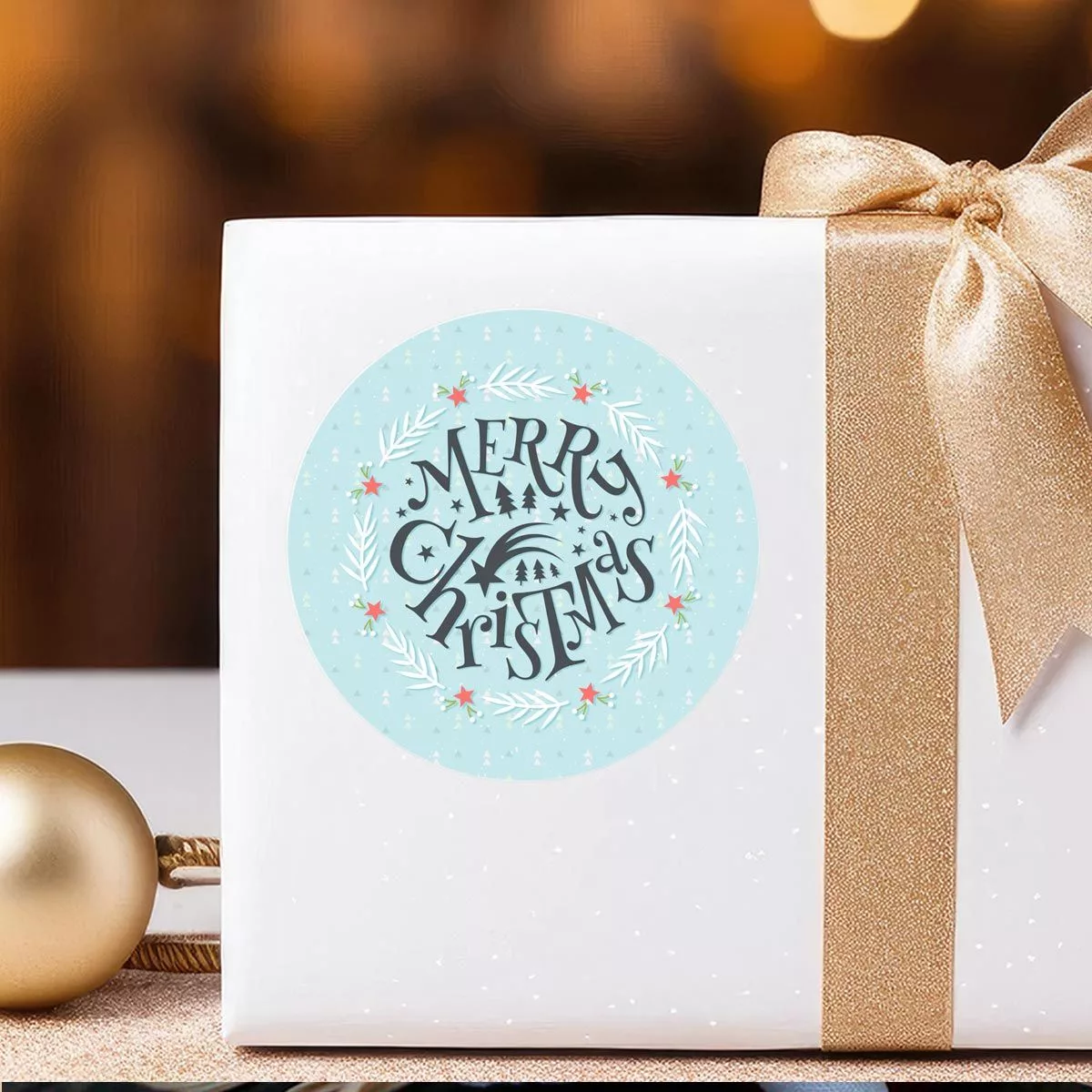 Christmas sticker label, Merry Chirstmas, light blue