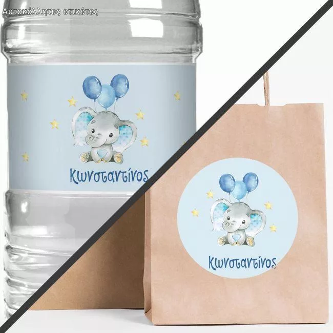 Sticker label Elephant Balloons and stars