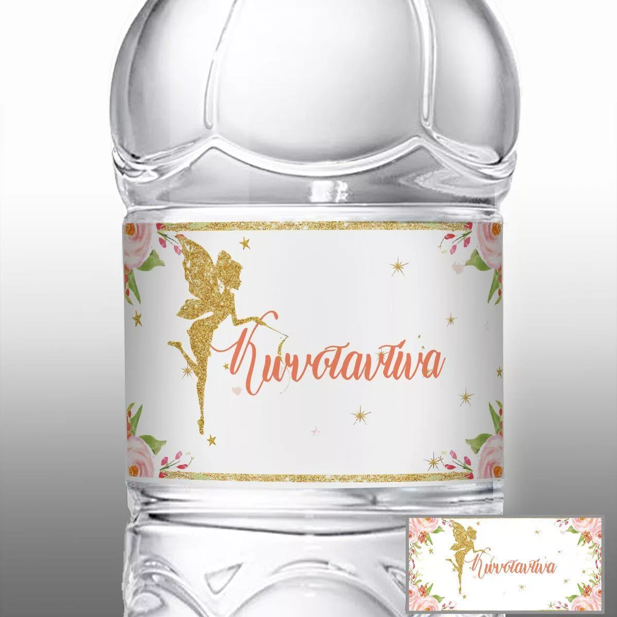 Sticker label Fairy and watercolor flowers