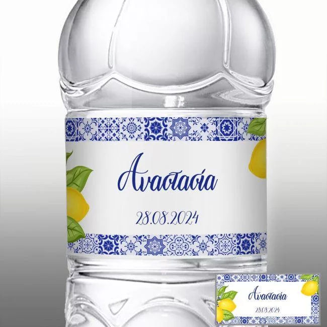 Canvas print Vaptism welcome, Blue tiles lemons
