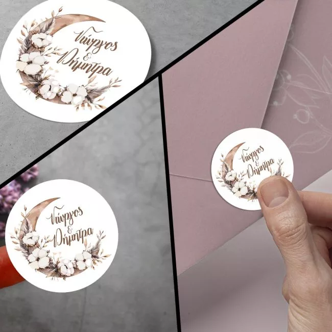 Sticker label Boho Moon couple names 3
