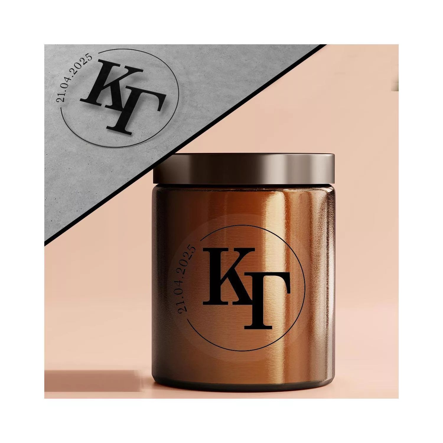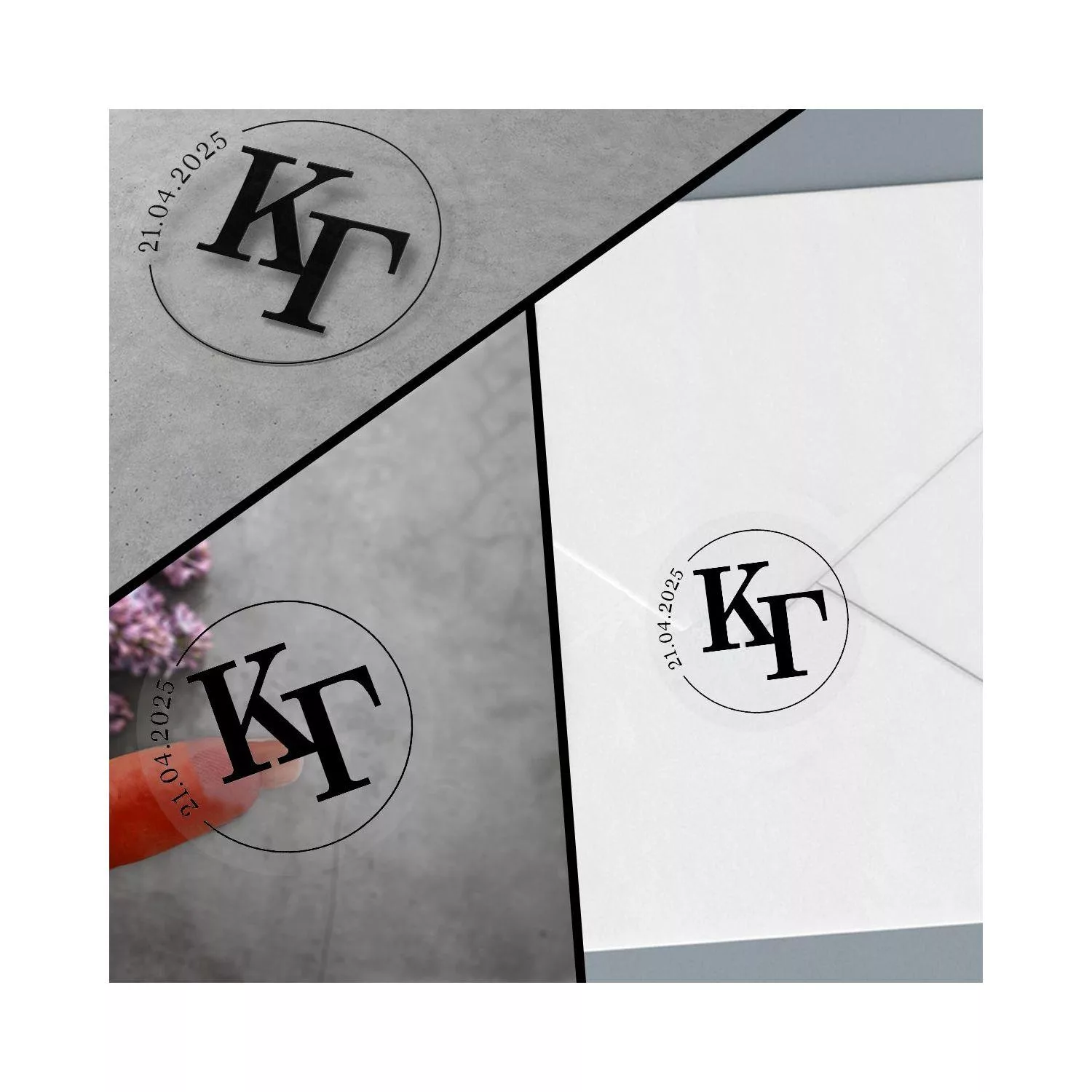 Stickers labels marriage initials and date circle black