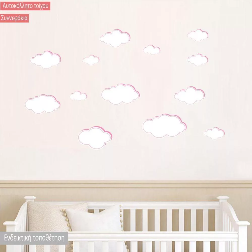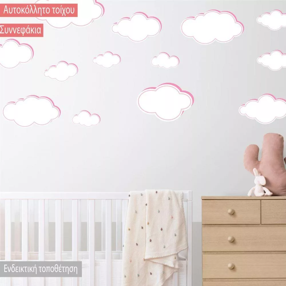 Kids wall stickers pink clouds various sizes