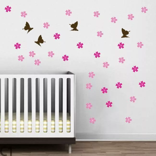 Kids wall stickers Blooming cherry, flowers, butterflies, additional stickers