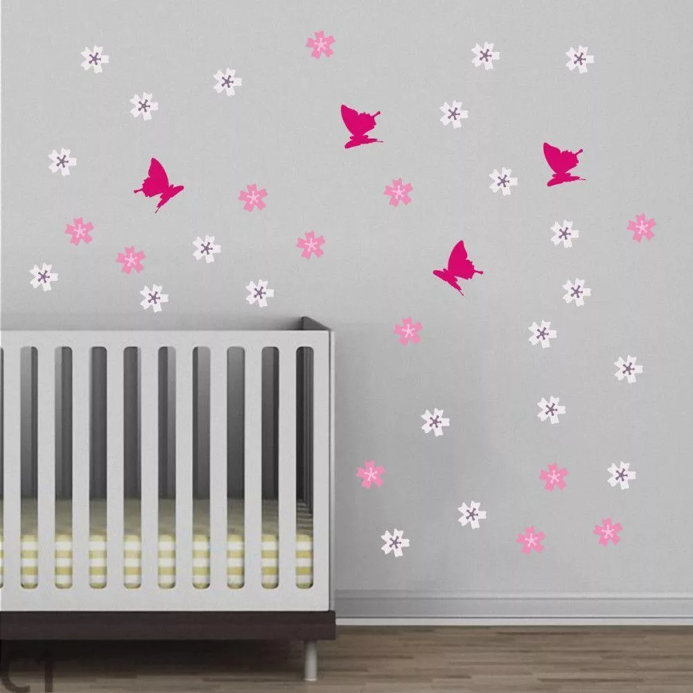 Kids wall stickers Blooming cherry, flowers, butterflies, additional stickers