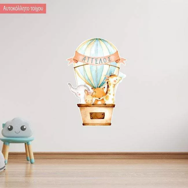 Kids wall stickers Airballoon with Animals, Watercolor