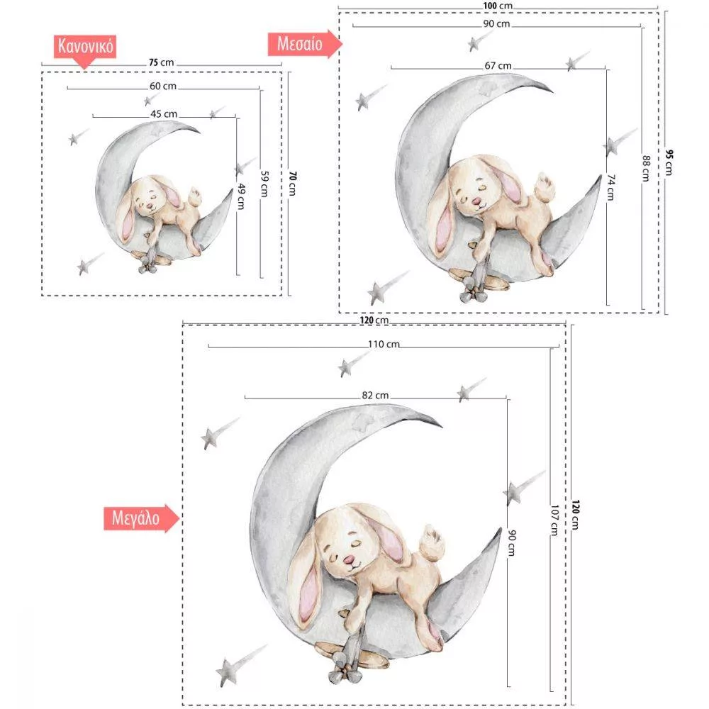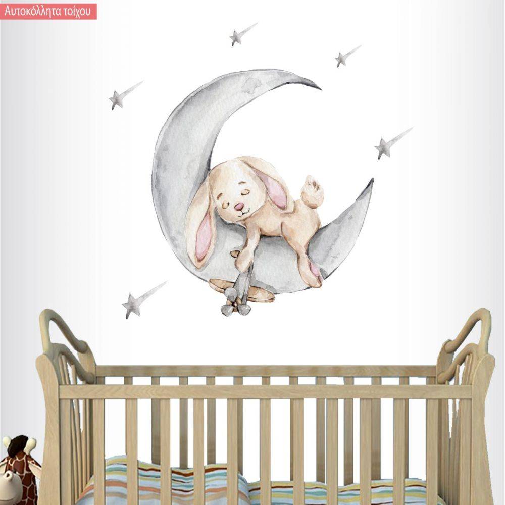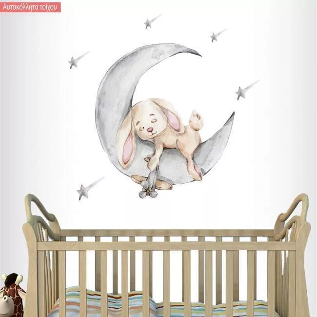 Kids wall stickers Cute bunny sleeping on the grey moon