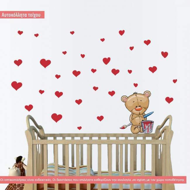 Kids wall stickers Bear artist, hearts and stars