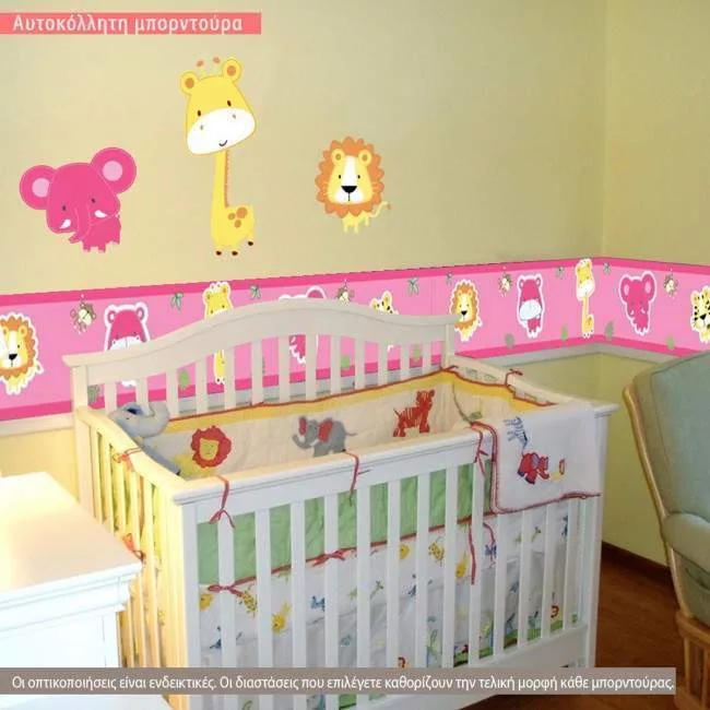 Kids wall stickers border Safari animals (baby pink)