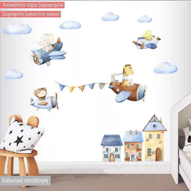 Kids wall stickers Watercolor airplane animals