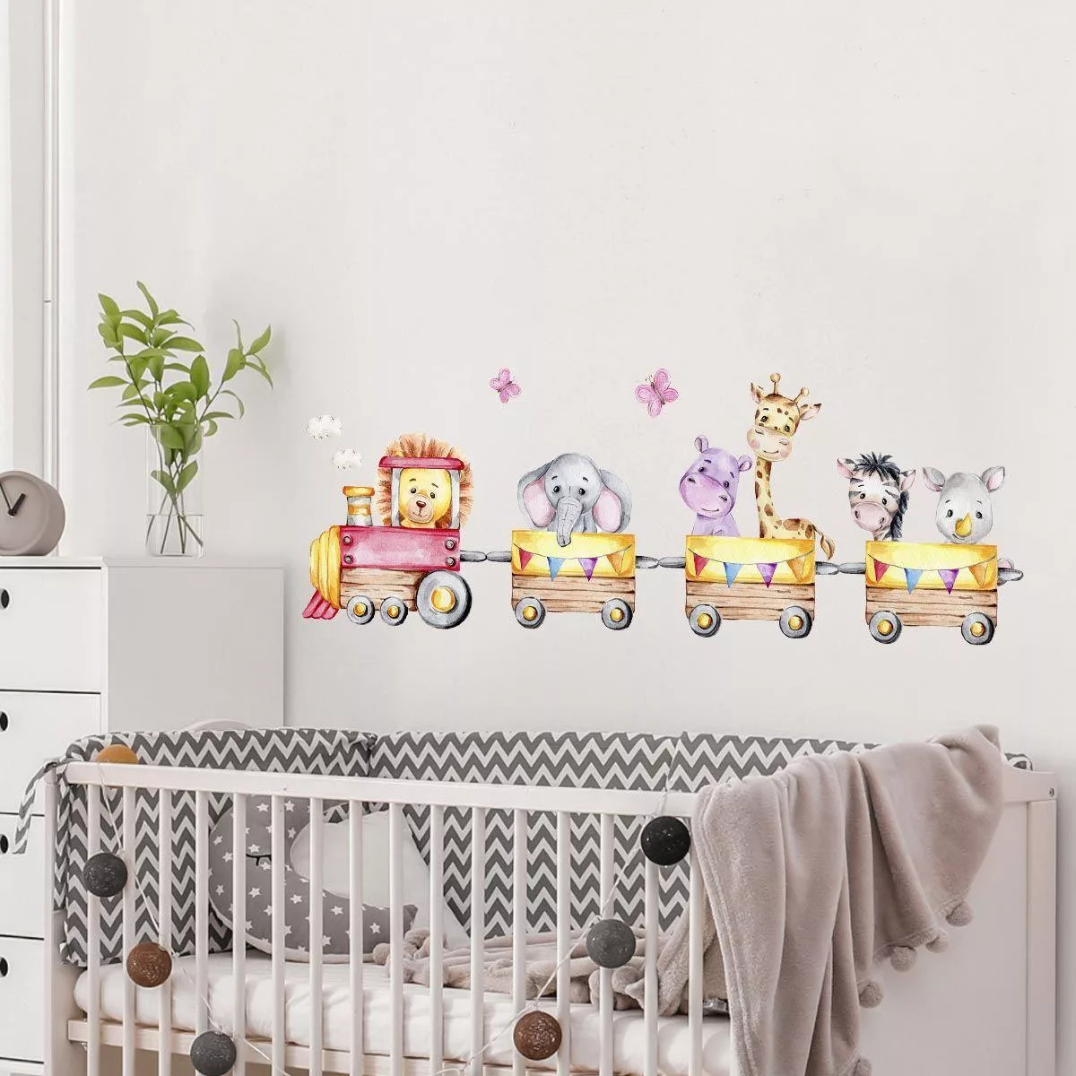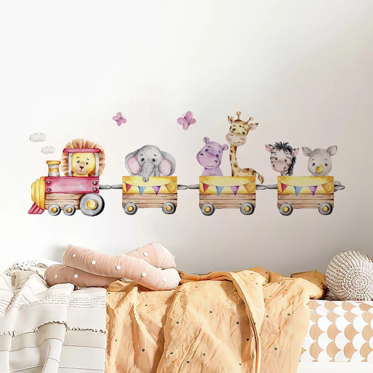 Kids wall stickers Watercolor train jungle animals