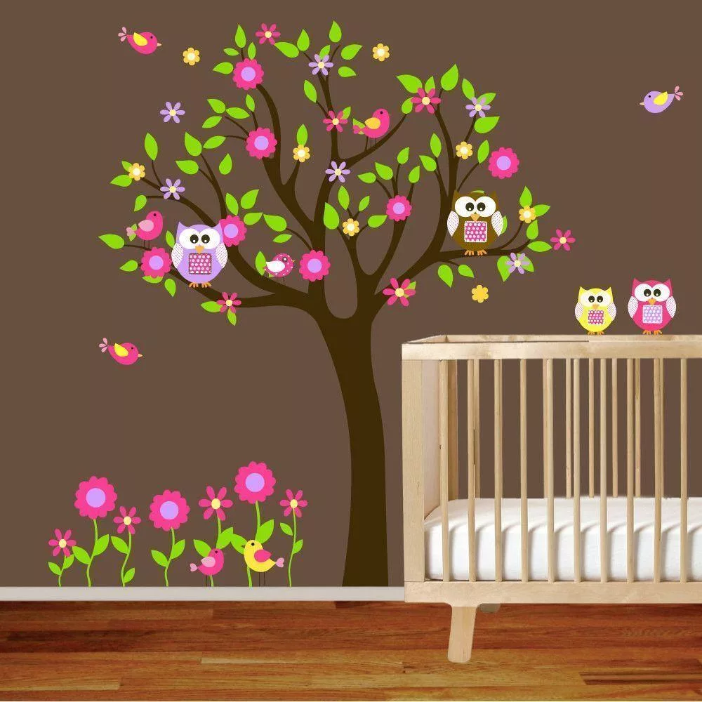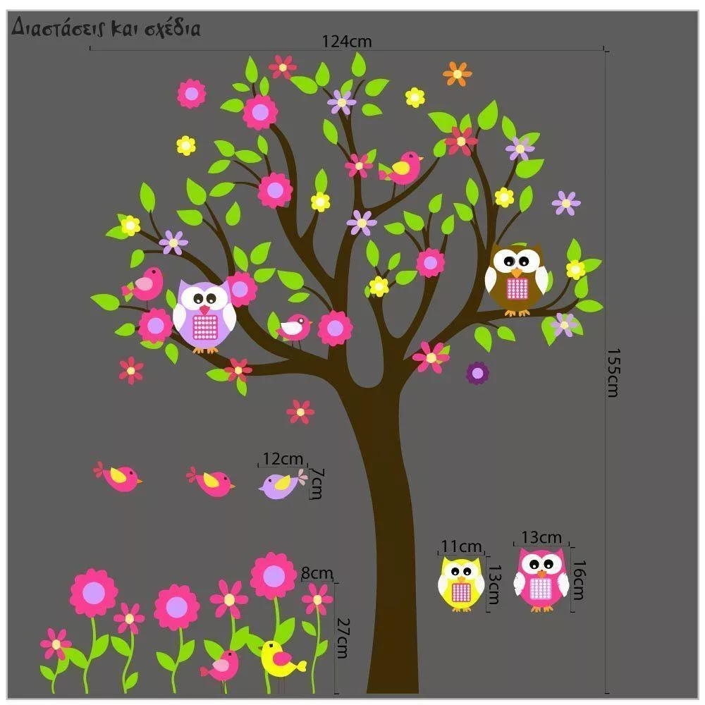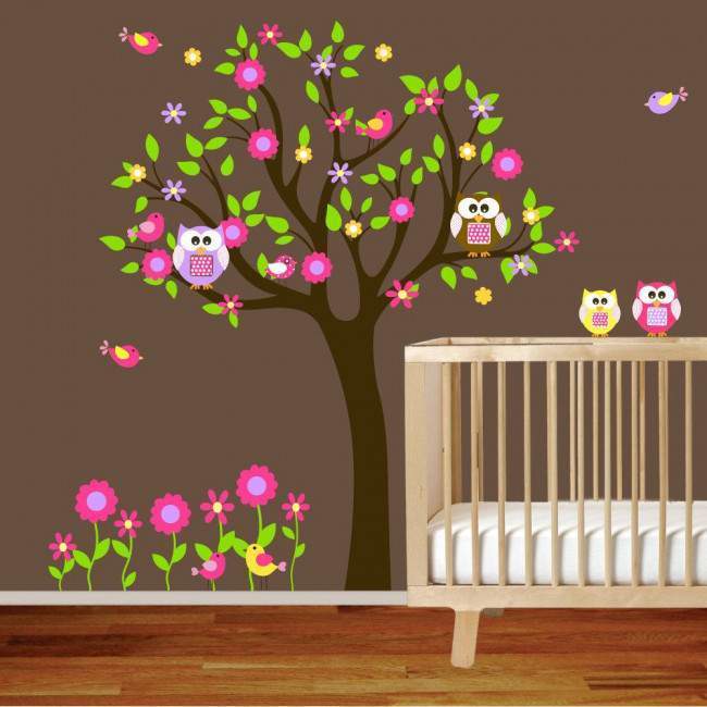 Wall stickers tree, owls, flowers and birds, Happy owls, design iv