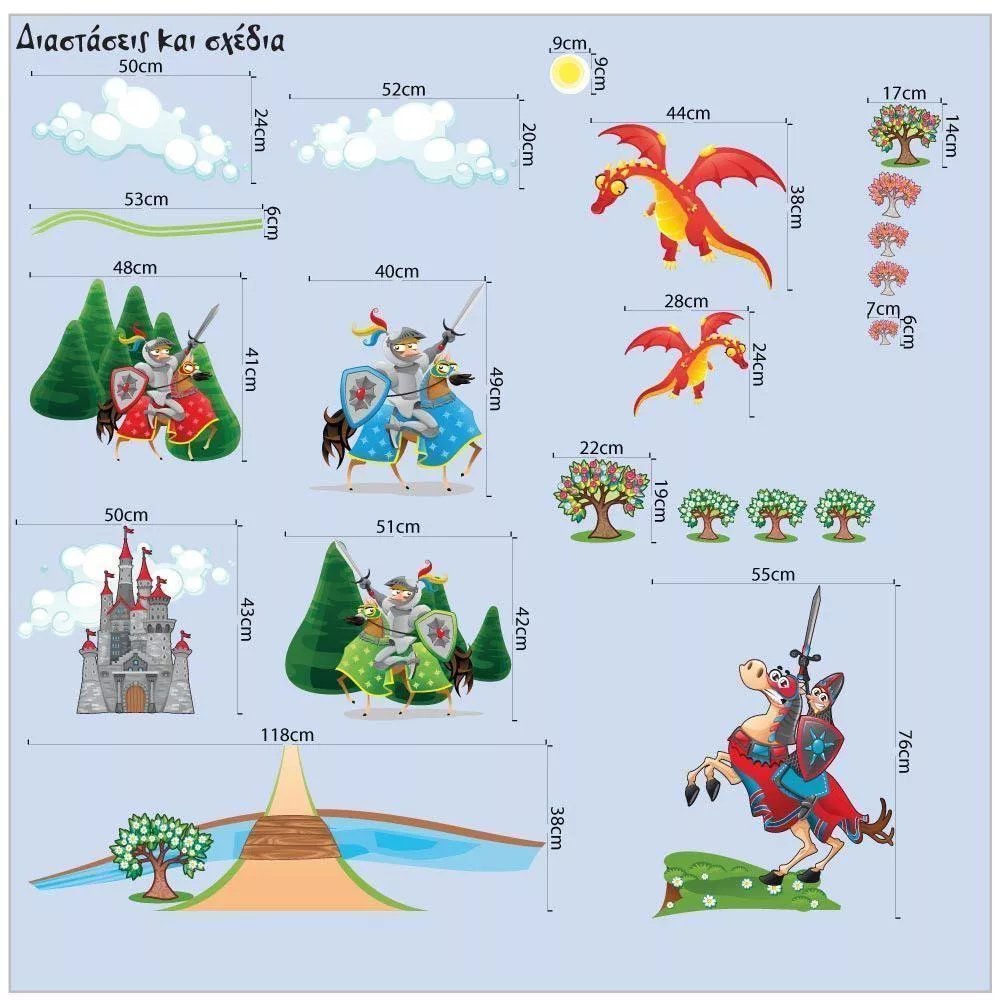 Kids wall stickers Knights , castle and dragon, large set