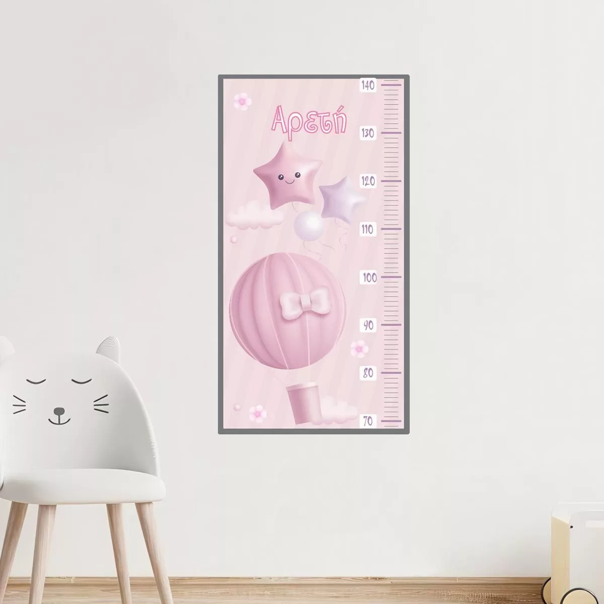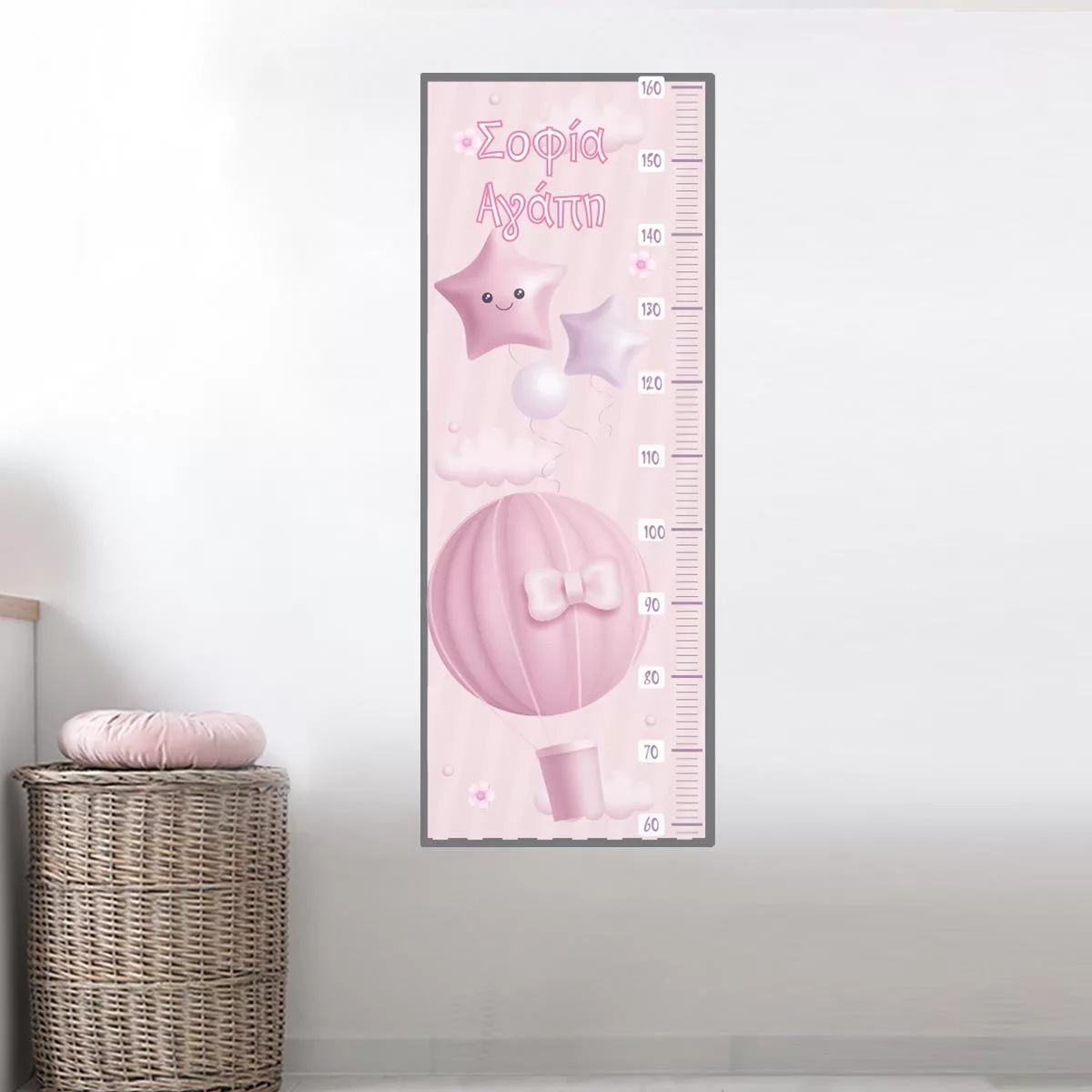 Wall stickers height measure balloons and clouds girl watercolor