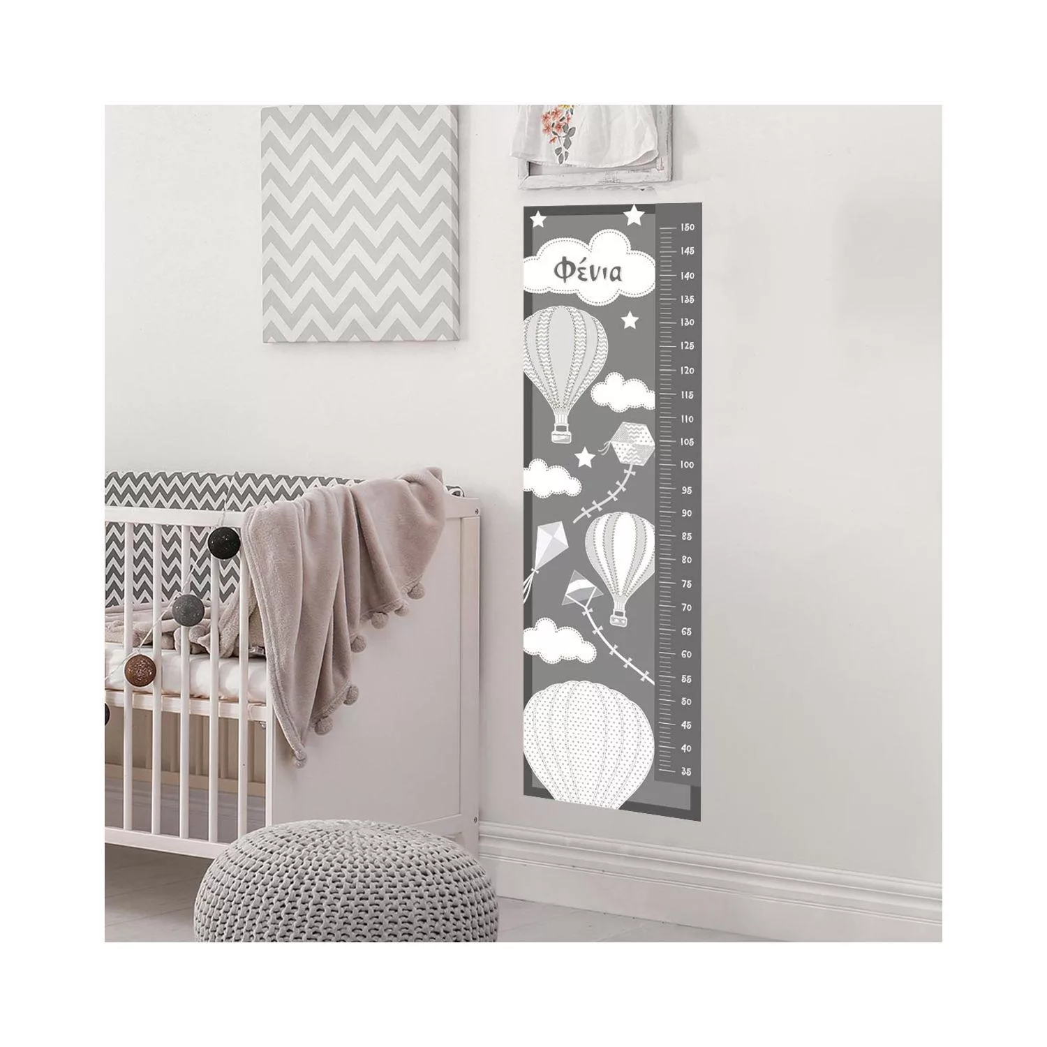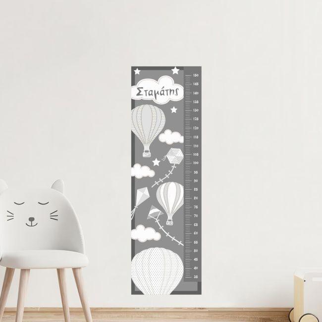 Wall stickers height measure Balloons in the night sky gray theme