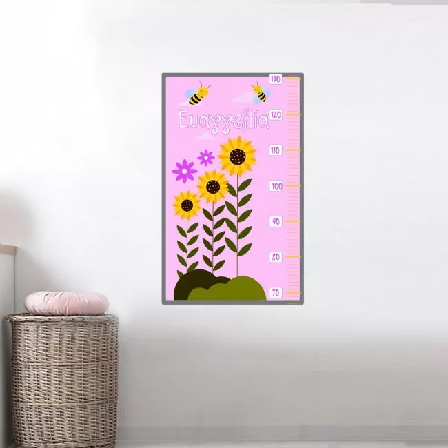 Wall stickers height measure Bees and flowers