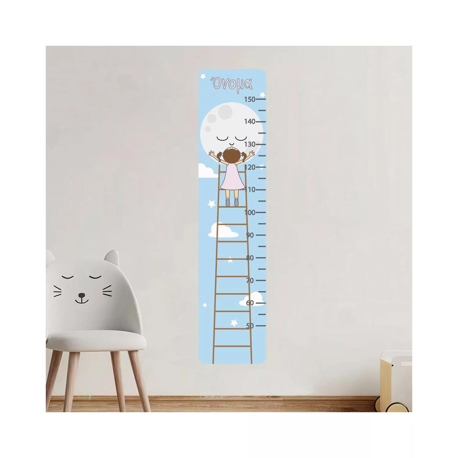 Wall stickers height measure Moon and girl