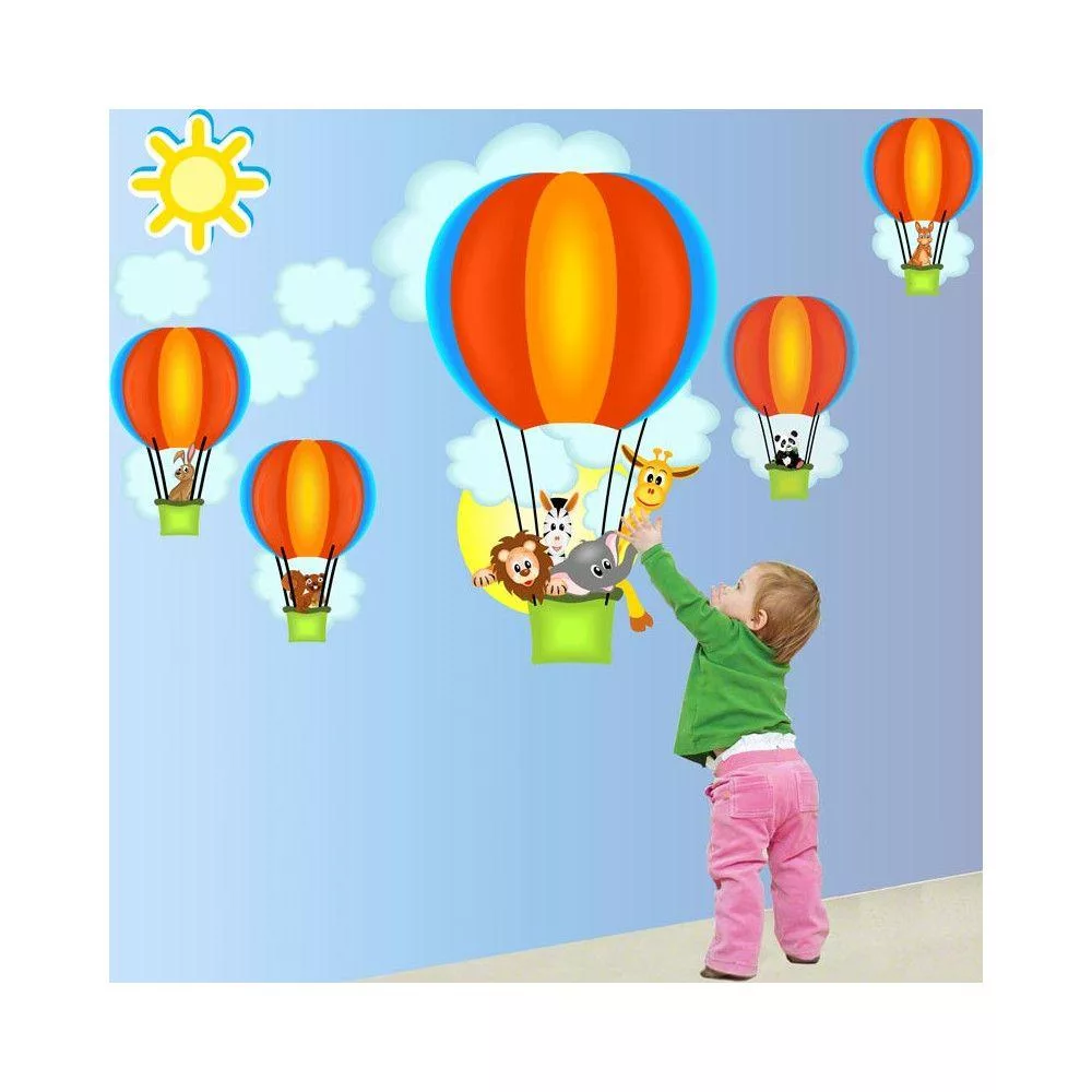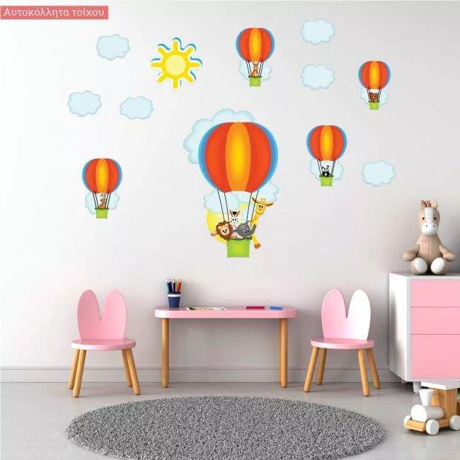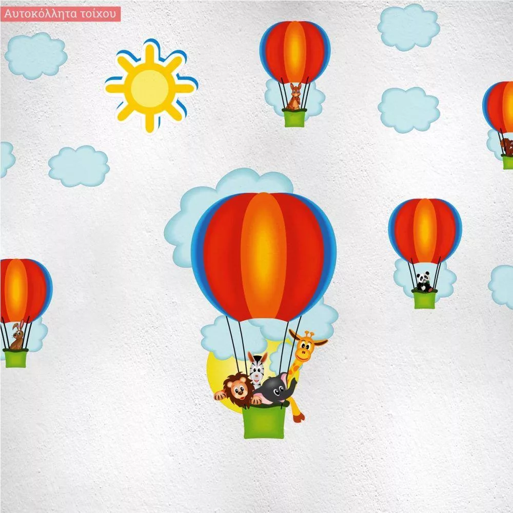 Kids wall stickers Hot air balloons, animals (light blue)