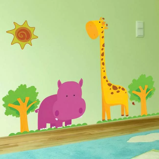 Kids wall stickers Hippopotamus, giraffe, Happy Hippo & Giraffe